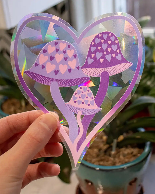 Mushroom Heart - 5" Suncatcher - Rainbow Window Decal StickerRegular price $5.00 USDRegular priceUnit price / per$7.00 USDSale price $5.00 USDSale